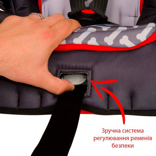 • 5-точкові ремені безпеки автокрісла рекомендовані для групи 1 (10-18 кг), 3-точковий ремінь безпеки автомобіля – для групи 2/3 (14-45 кг)