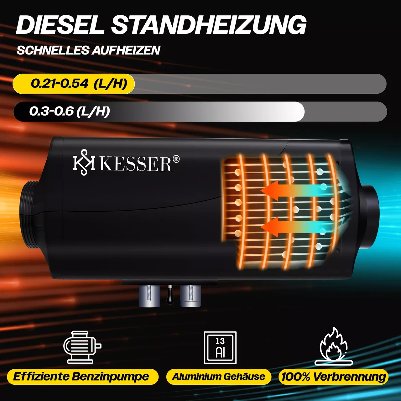 Інноваційна дизельна пічка KESSER – це сучасна система обігріву, розроблена для широкого спектру застосування. Підходить для автомобілів, вантажівок, кемперів, автобусів, човнів, дачних будинків, гаражів, майстерень та складів.