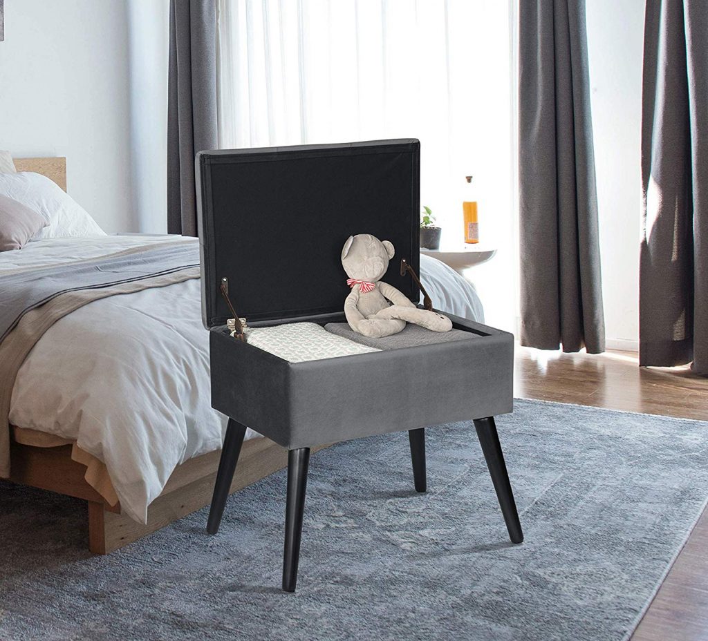 - Бархатный табурет с местом для хранения SH52 (Черный)