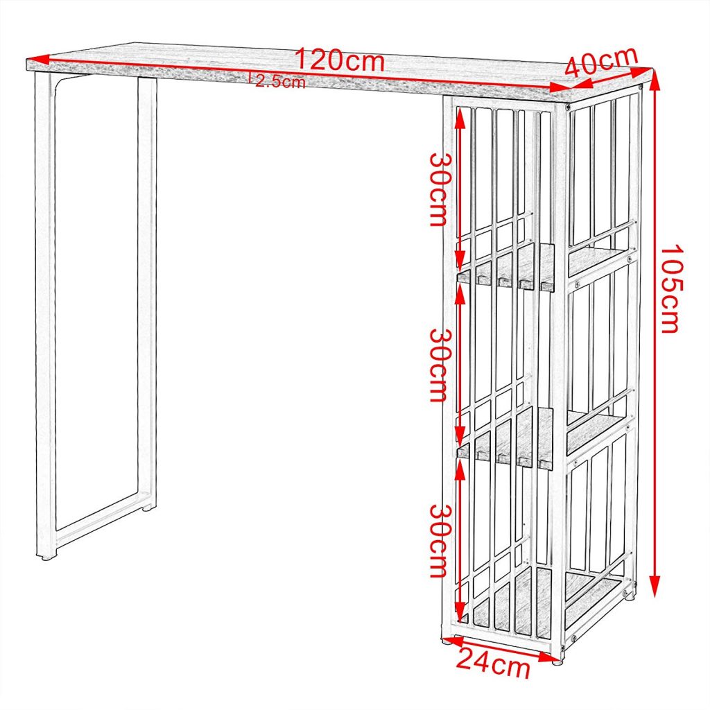 “Барный стол с 3 полками из металла и МДФ BT26 (Черный)”