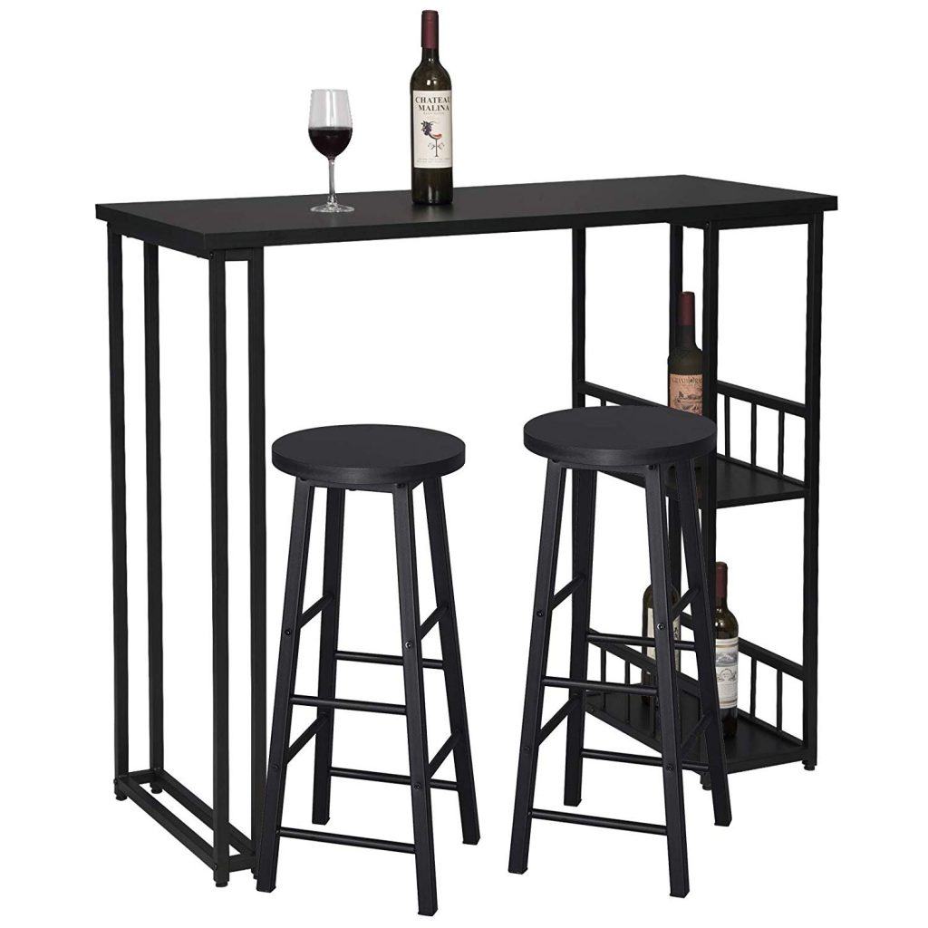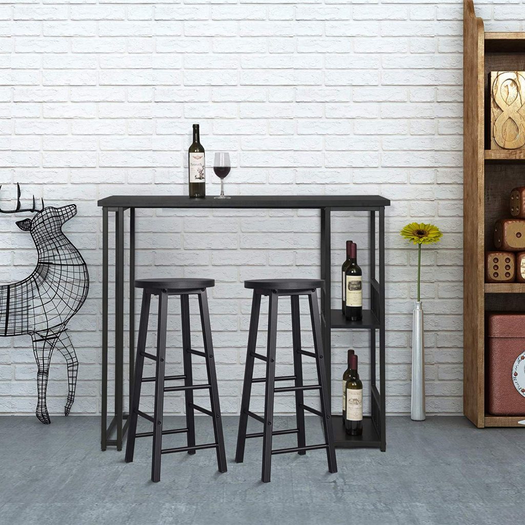 “Барный стол с двумя полками из металлического каркаса и МДФ + 2 барных стулья BT25-BH130 (Черный)”