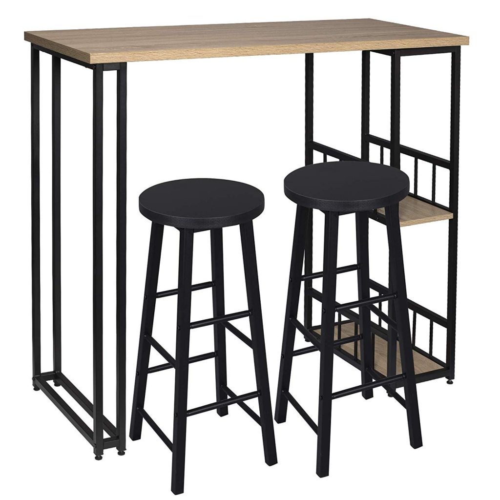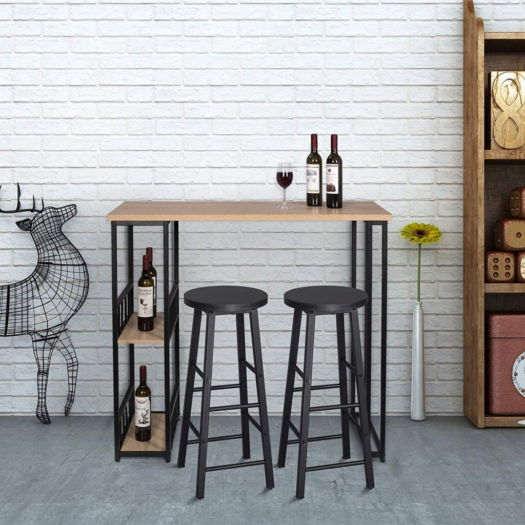 “Барный стол с двумя полками из металлического каркаса и МДФ + 2 барных стулья BT25-BH130 (Коричневый светлый)”