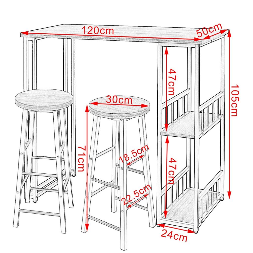 Барный стол с двумя полками из металлического каркаса и МДФ + 2 барных стулья BT25-BH130 (Коричневый светлый)