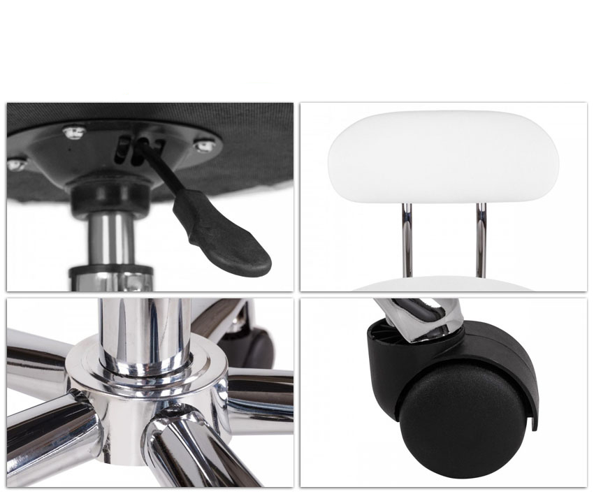 Данная модель, за счёт своего стильного дизайна, гармонично впишется в любой интерьер, а её функциональность оценит каждый специалист. Комфорт и удобство в работе мастера обеспечиваются такими свойствами данного стула, как: возможность регулировать высоту с помощью пневматического подъёмника, вращение на 360®, манёвренность за счёт 5-ти колёс на основании, мягкй и высокий слой обшивки. Высококачественная обивка из ПВХ является водо- и грязеотталкивающей и позволет надолго сохранить первозданный вид сидения.Дополнительные характеристики: