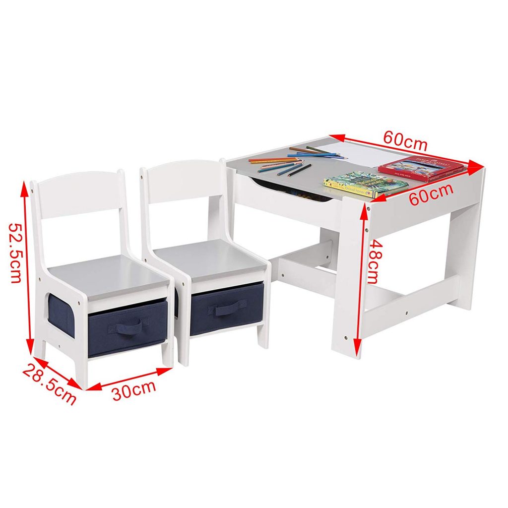 “Дитячий стіл з 2 стільцями, з місцем для зберігання SG002 (Білий)”
