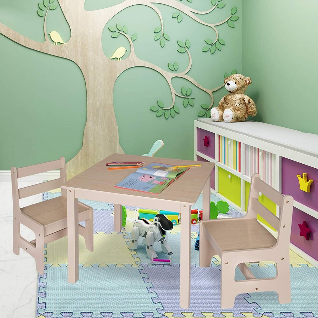 • Дитячий стіл із 2 стільцями для дошкільнят має правильну висоту сидіння.