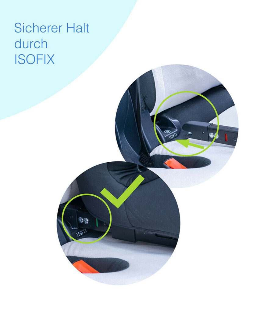 Пристегните ребенка стандартным 3-точечным ремнем безопасности. Ети детские кресла также можно использовать со стандартными системами ISOFIX в автомобиле.