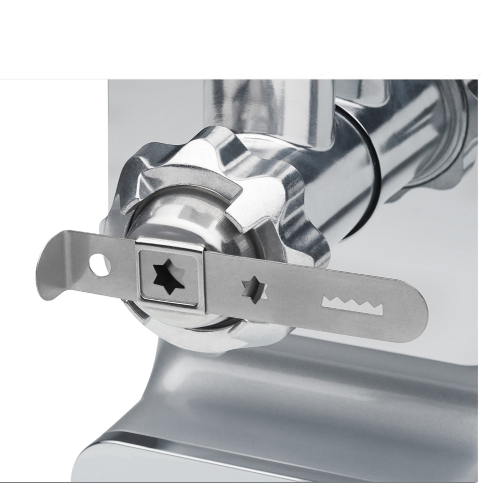 Настоящей хозяйке, подбирающей себе мясорубку, сложно будет отказаться от данной модели после того, как она узнает все её возможности. Bomann FW447CB – это не просто мясорубка с идеальными техническими характеристиками. Она может гораздо больше: её дополнительные возможности позволят вам не только радовать своих близких, но и несомненно их удивлять! С чудо-насадками для выпечки вы сможете выпекать удивительной формы печенье, что сделает вас волшебницей в глазах ваших деток. А поистине удивить мужа и гостей вам поможет насадка кеббе (подробнее что такое кеббе можно прочитать здесь http://tehnika.expert/dlya-kuxni/myasorubka/chto-takoe-nasadka-kebbe.html ), ну и, конечно же, насадка для колбасок. Ярким дополнением к списку достоинств данной мясорубки будет отсек для хранения аксессуаров, находящийся в самой мясорубке, а также мощные присоски, препятствующие скольжению во время работы.