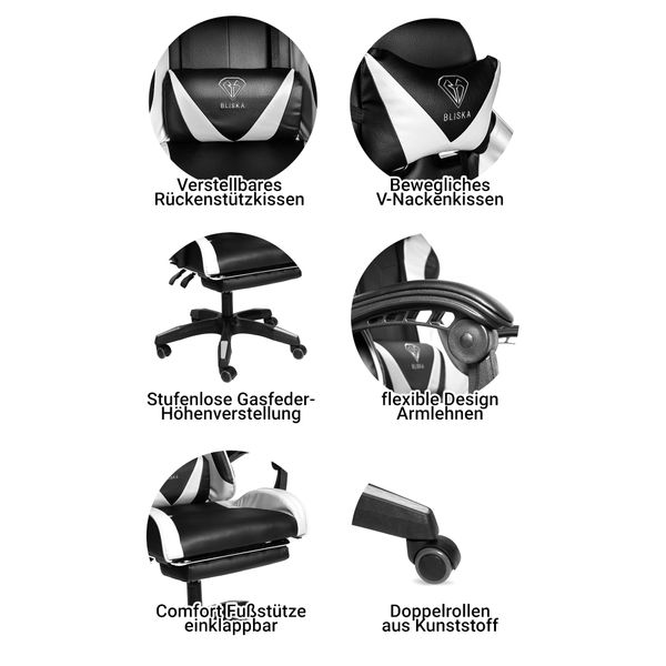 Геймерское кресло игровое с подставкой для ног, до 120кг нагрузка, с 4D подлокотниками ts-bs811 Белый