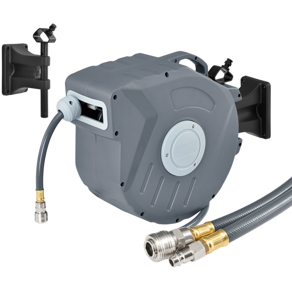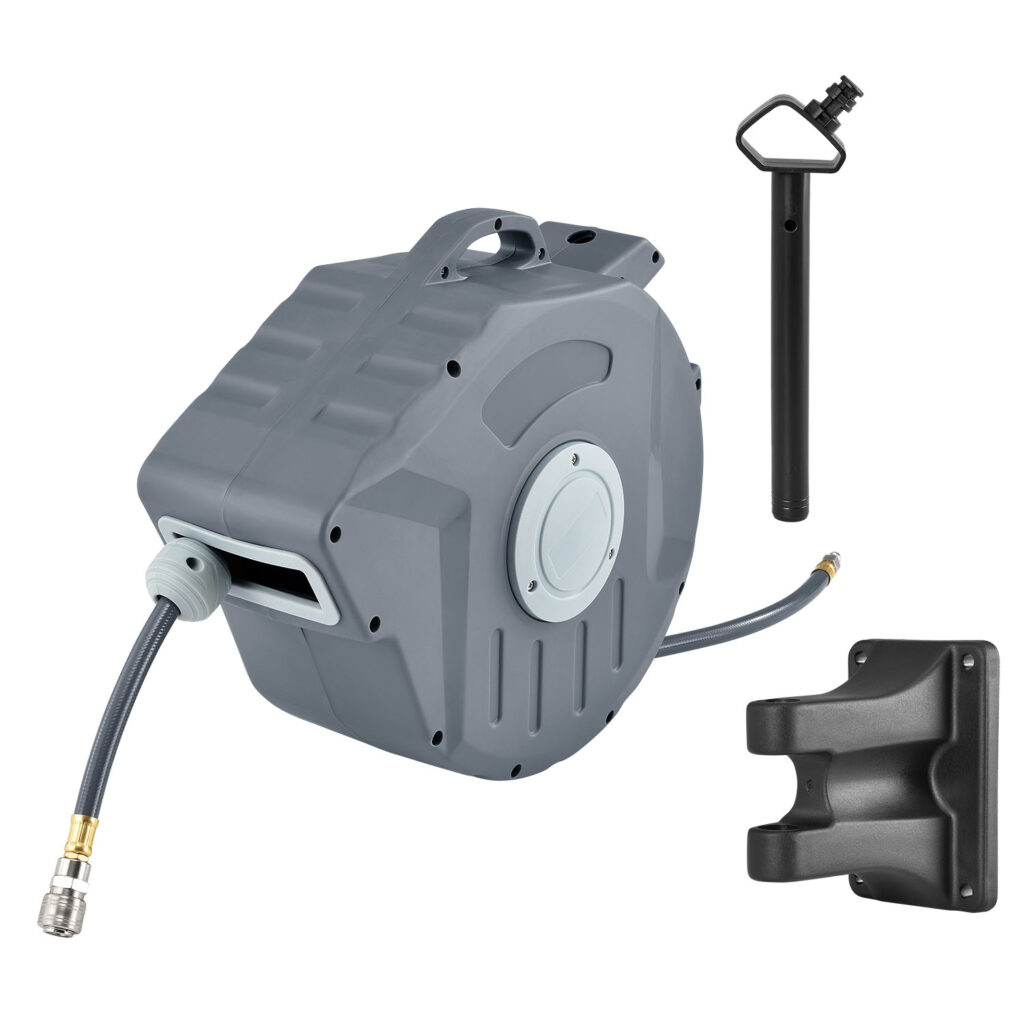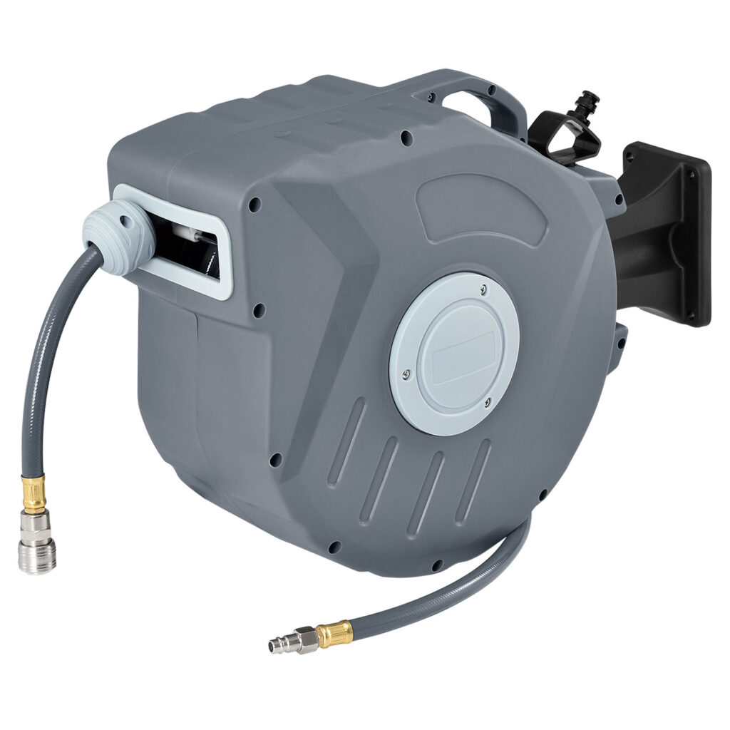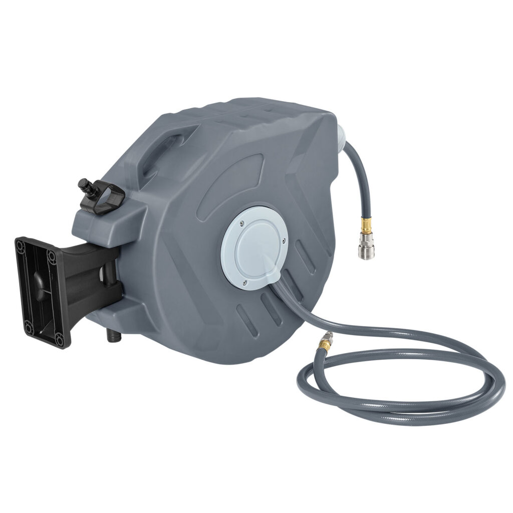 Катушка для шланга сжатого воздуха, со шлангом длиной 20 метров станет прекрасным дополнением подвала, гаража или мастерской.