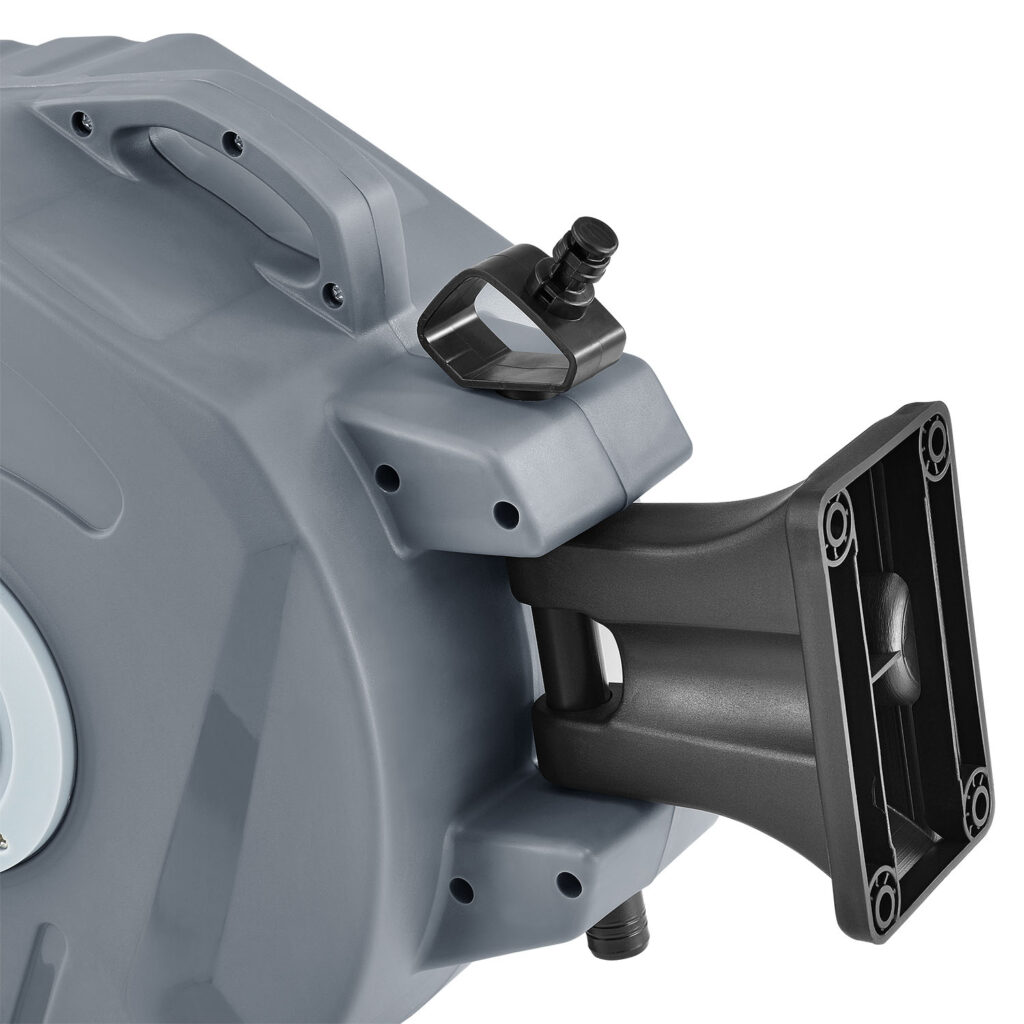 Катушку для шланга можно легко прикрепить к стене с помощью монтажного кронштейна. Катушку можно свободно поворачивать на 180 ° и при необходимости просто вынуть из держателя.