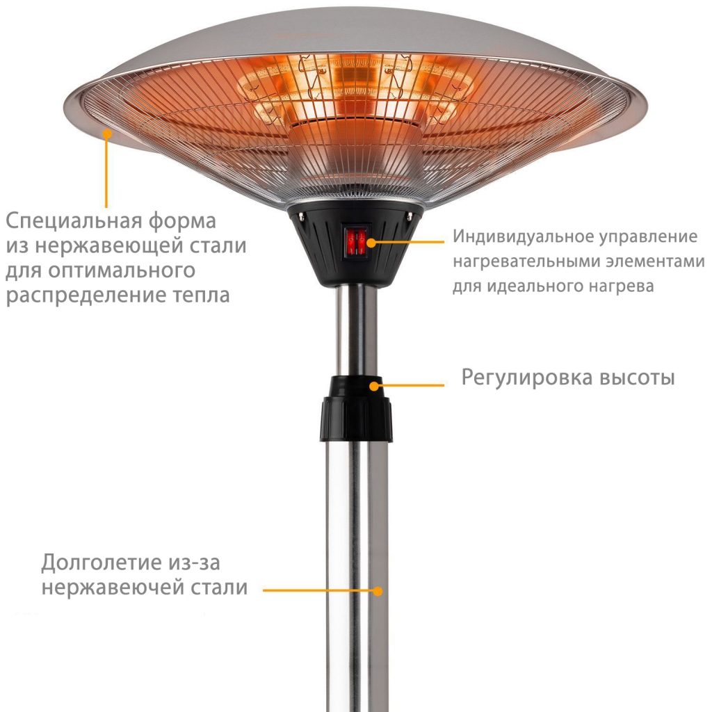 ИНФРАКРАСНЫЙ: в отличие от обычных тепловентиляторов, инфракрасное излучение не только нагревает окружающий воздух, но и передает тепло освещенным людям и объектам. Мягкий красный свет обеспечивает дополнительный уют.