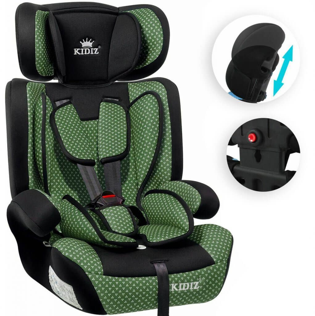 - KIDIZ® Дитяче автокрісло 9-36 кг група 1,2,3 (Зелений)