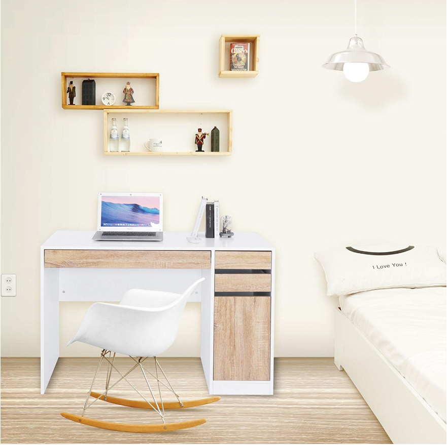 Сучасний письмовий стіл із 3 ящиками та 1 шафою пропонує вам багато місця для зберігання.
