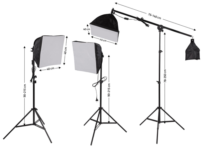 • 2 штатива включая 2 софтбокса 40х40 см вертикального освещения