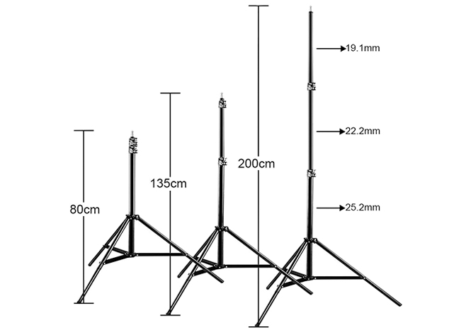 — Штатив изготовлен из алюминия, выдвижной от 78 см до 200 см (с стрелой до 350 см)