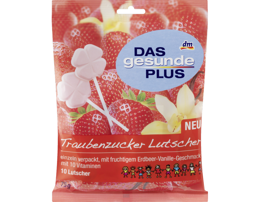 конфеты на палочке Das gesunde Plus Traubenzucker Lutscher Erdbeer-Vanille