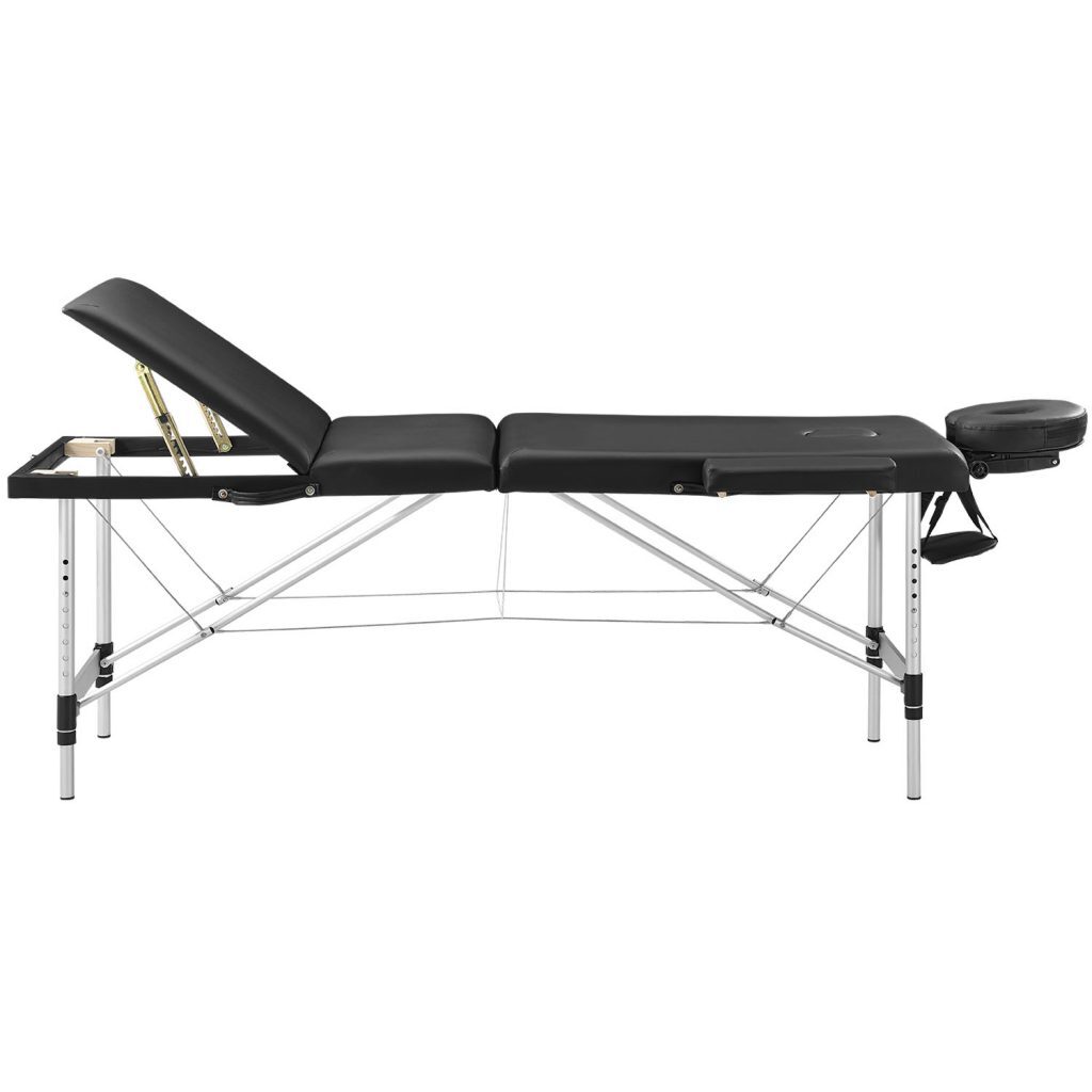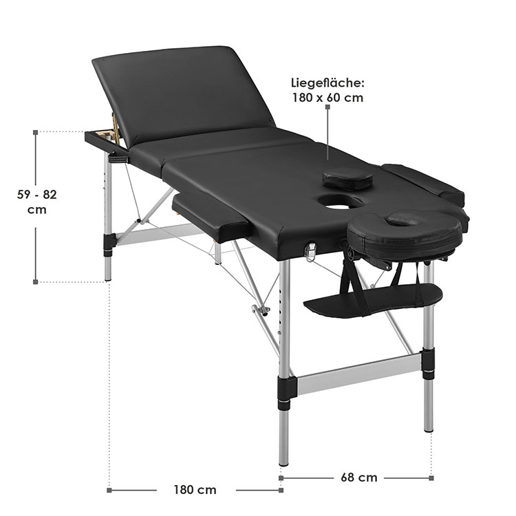 Удобный и регулируемый по высоте: В дополнение к обивке толщиной 9 см из синтетической кожи, в комплект входят регулируемые подлокотники, ножная секция и эргономичные подголовники – идеальный вариант для обширного массажа. В зависимости от роста массажиста вы можете отрегулировать высоту массажного стола в 8 шагов от 59 до 82 см.