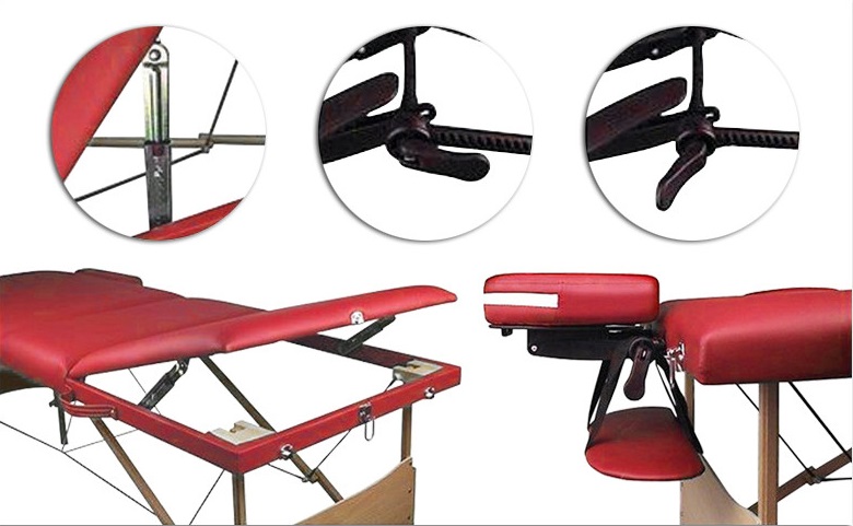 Каркас столу дуже міцний, виготовлений із твердих порід бука та покритий захисним лаком. Додаткову стійкість конструкції надає розтяжка із металевих тросів. Незважаючи на свою невелику вагу, дана модель дуже міцна і витримує динамічне навантаження до 250 кг, що дозволяє майстру інтенсивно працювати з пацієнтами з великою вагою. Завдяки регулятору висти стіл підлаштовується під індивідуальні параметри та потреби майстра.