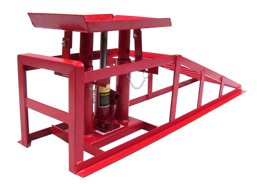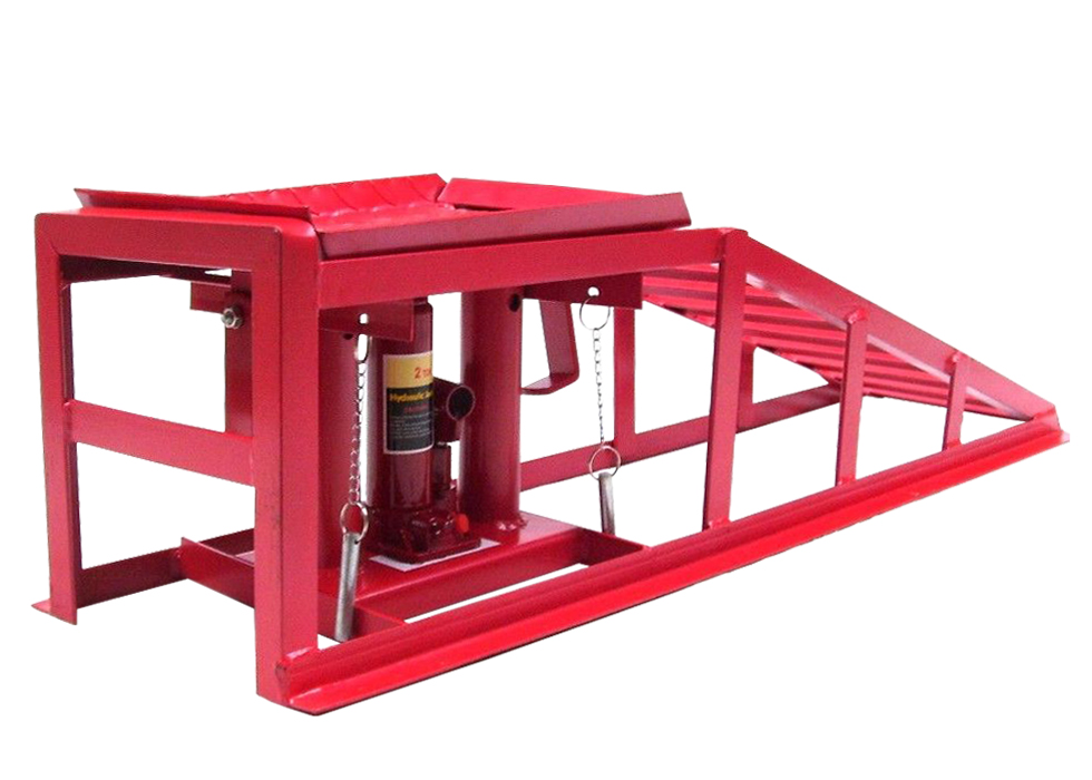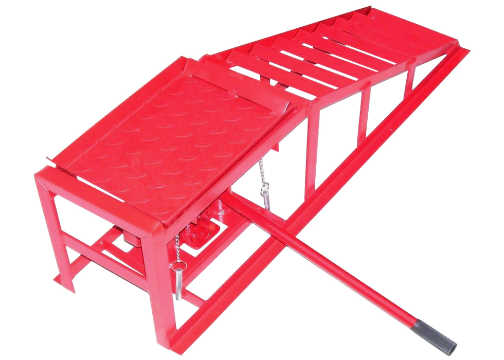– Регулируемая по высоте рампа для подъема автомобиля, подъем с помощью гидравлического домкрата