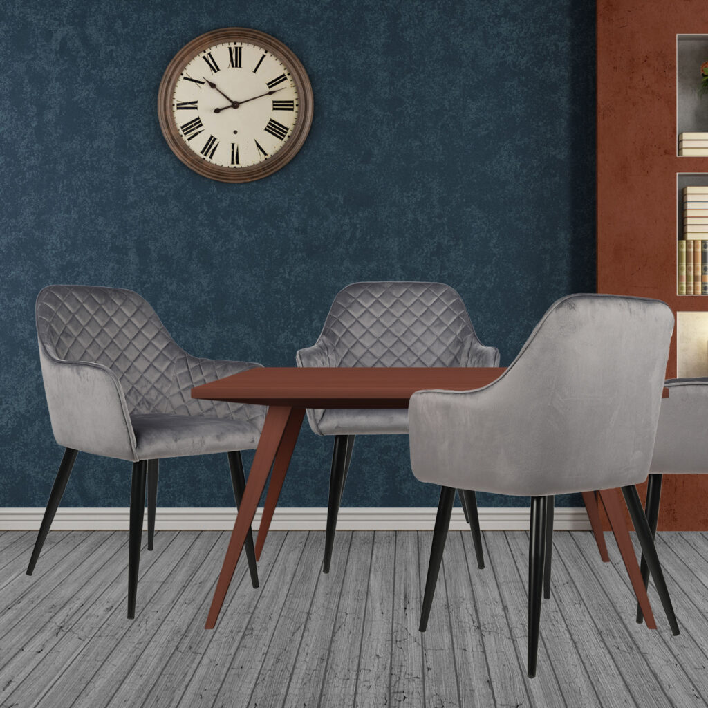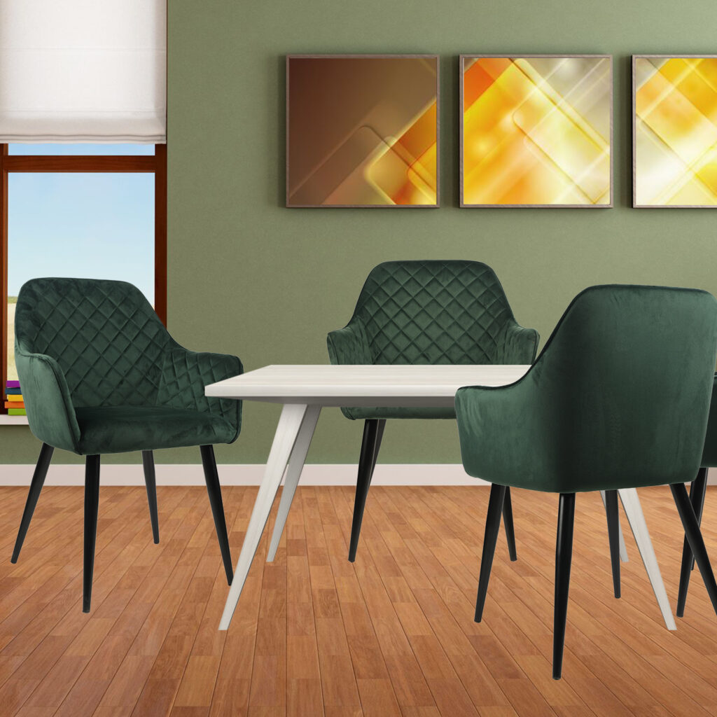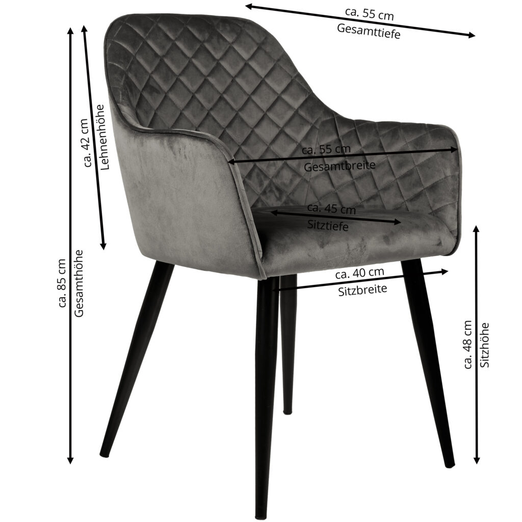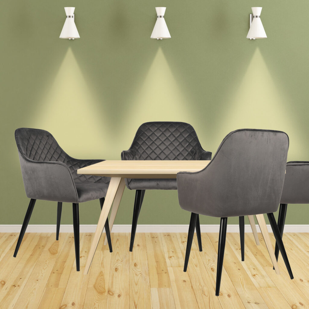 Симпатичные кресла с обивкой из тонкого бархата в стеганом виде. Будь то кухня, столовая или гостиная, эти кресла привлекают внимание не только дома, они также идеально подходят в качестве стульев для ожидания в стильных офисах. На выбор предлагается 5 модных цветов, поэтому варианты дизайна комнаты безграничны. Элегантно прошитый бархатный чехол и металлические ножки завершают дизайн. Эти кресла не только особенные визуально, но и просты в уходе. Кресло можно купить отдельно или в двойной упаковке (2шт).