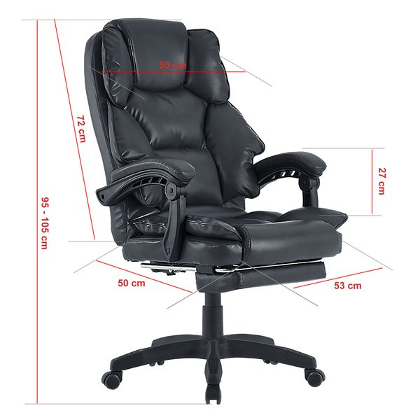 Гнучке крісло з елегантним дизайном, що імітує шкіру. Це офісне крісло оснащене м’якими гнучкими триточковими підлокітниками. Його можна встановити розслаблююче положення, а підлокітники адаптуються до цього положення. Для максимального розслаблення м’яку підставку для ніг можна вийняти. Крісло, що обертається, можна регулювати по висоті, а так само можна регулювати нахил спинки.