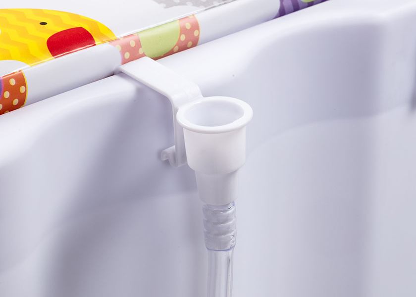 – ванночка эргономичной формы оснащена трубкой для слива воды. Ванночка расположена на высоте, удобной для взрослых, которым не приходится сильно нагибаться, чтобы покупать ребенка;