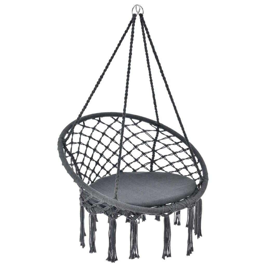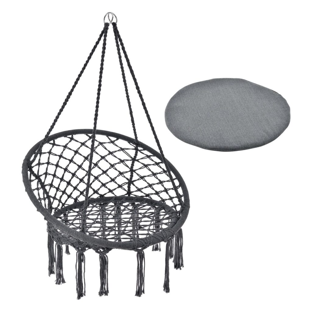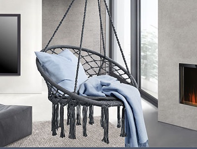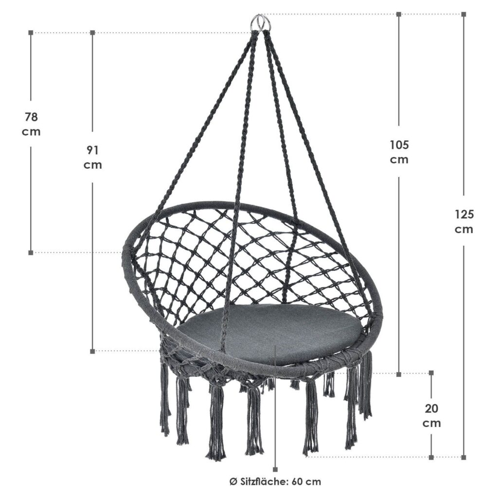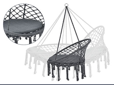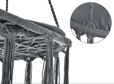 Благодаря уникальному дизайну макраме вы точно в тренде. Техника вязания узлов в стиле бохо, зародившаяся на Востоке, создает уютную атмосферу и в настоящее время используется в многочисленных декоративных элементах. Простой темно-серый цвет подвесного сиденья прекрасно впишется в вашу гостиную.