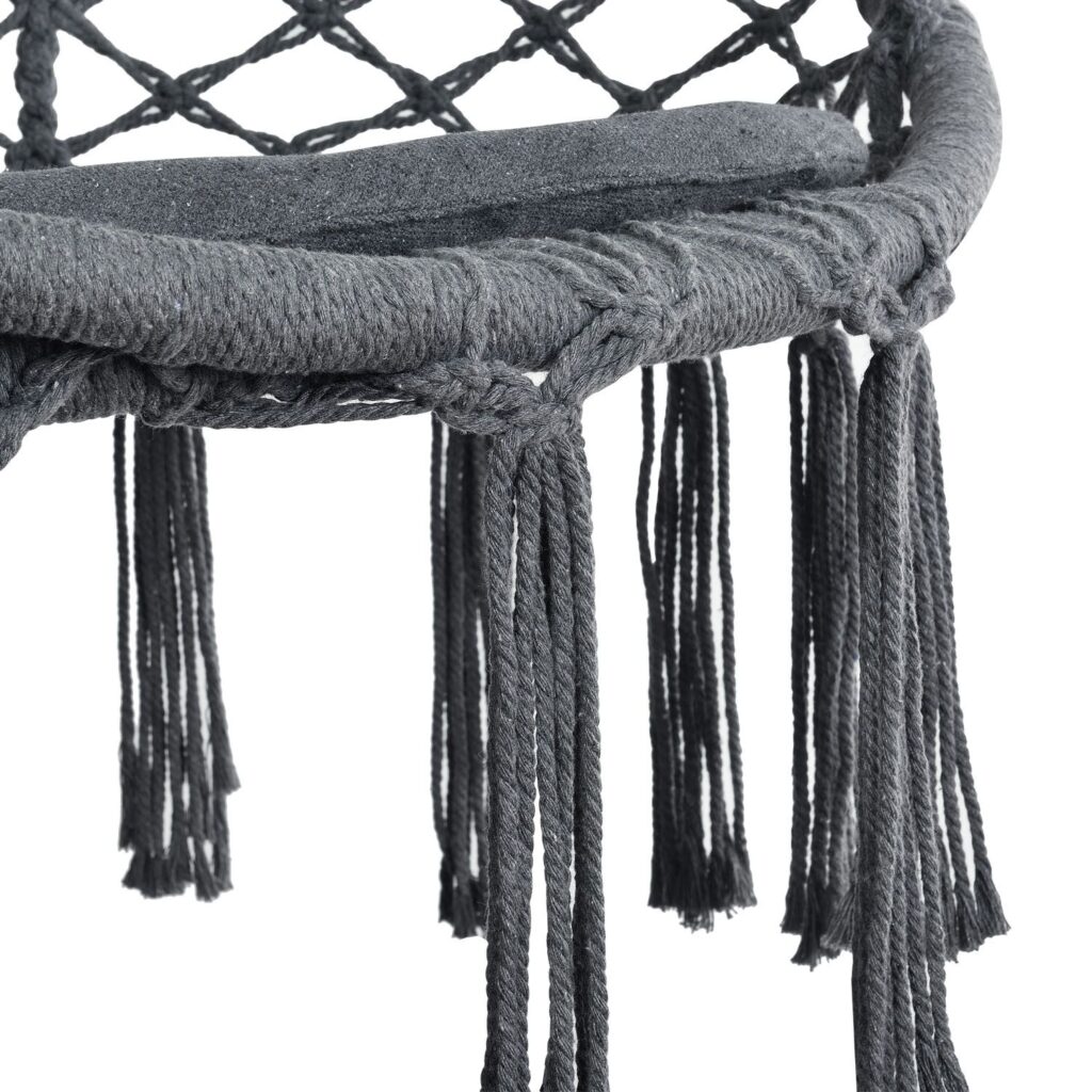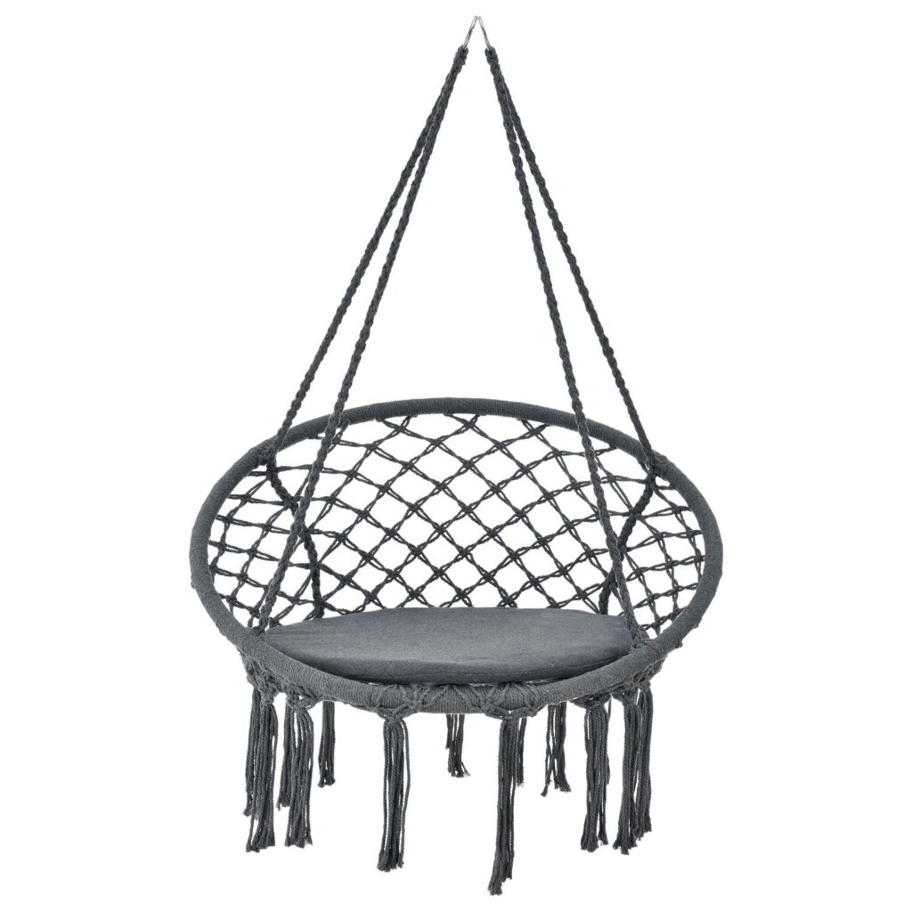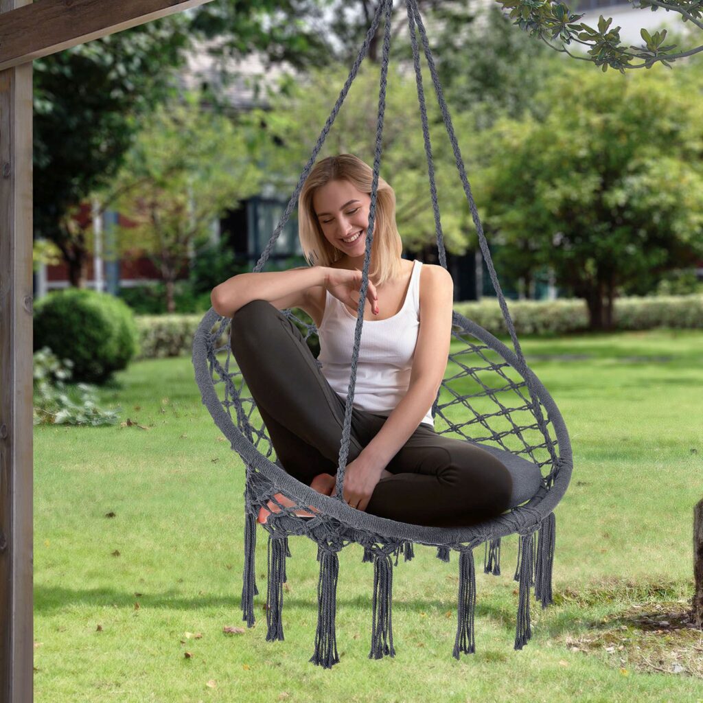 Благодаря уникальному дизайну макраме вы точно в тренде. Техника вязания узлов в стиле бохо, зародившаяся на Востоке, создает уютную атмосферу и в настоящее время используется в многочисленных декоративных элементах. Простой темно-серый цвет подвесного сиденья прекрасно впишется в вашу гостиную.