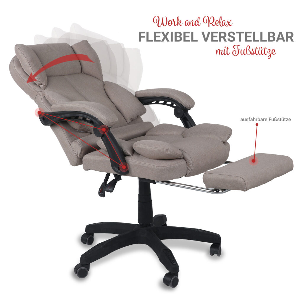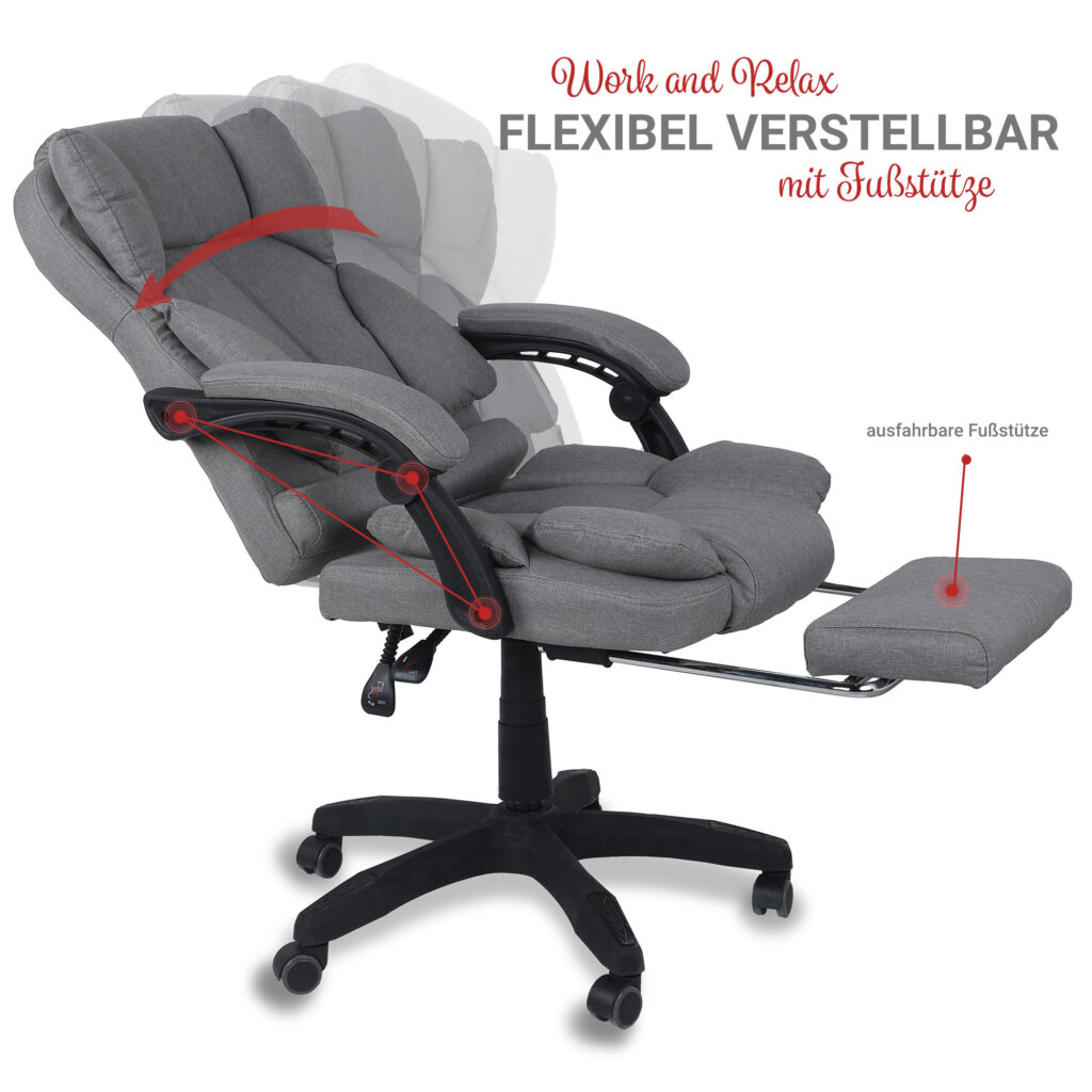 Гибкое кресло с элегантным дизайном. Офисный стул оснащен гибкими мягкими трехточечными подлокотниками. Его можно установить в расслабляющее положение, а подлокотники адаптируются к этому положению. Для максимального расслабления мягкую подставку для ног можно просто вынуть. Кресло регулируется по высоте, а так же можно регулировать наклон спинки.