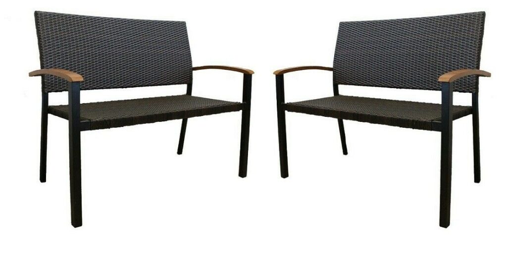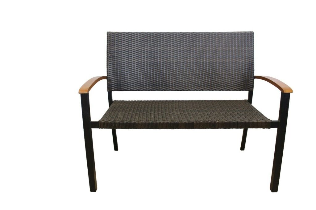 Вона виготовлена зі штучного ротанга – довговічного матеріалу, який стійкий до УФ-променів, перепадів температур і вологості, не деформується при використанні. В основі лавки металевий каркас.