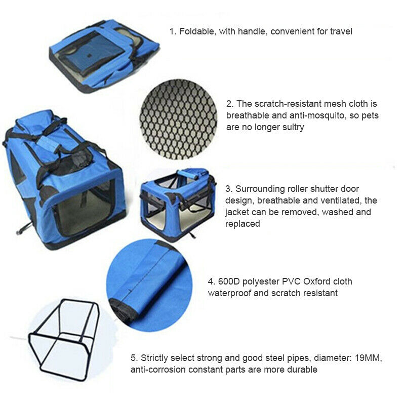 Продукт дуже зручний для ваших вихованців. З нашою переноскою для домашніх тварин вам більше не потрібно турбуватися про подорож із собаками та іншими домашніми тваринами. Зручна коробка із міцної тканини Оксфорд подарує вашому улюбленцю м’який та водонепроникний захист із хорошою видимістю та вентиляцією.