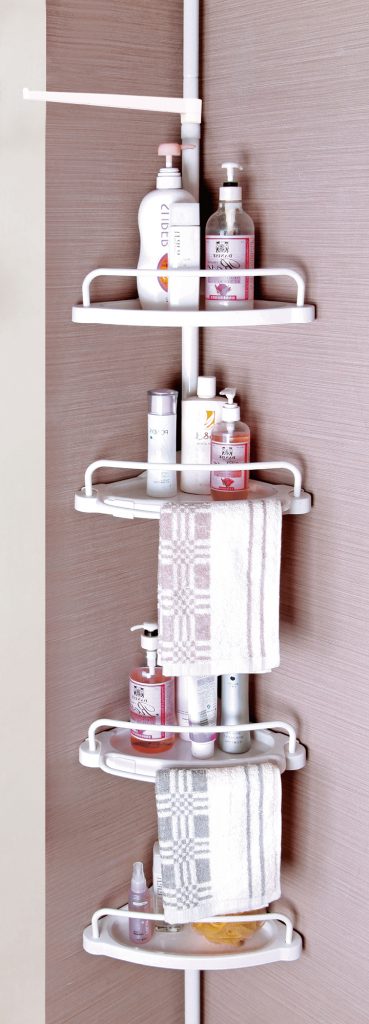 • Сучасна полиця для ванної кімнати з безступінчасто регульованим по висоті телескопічної штангою.