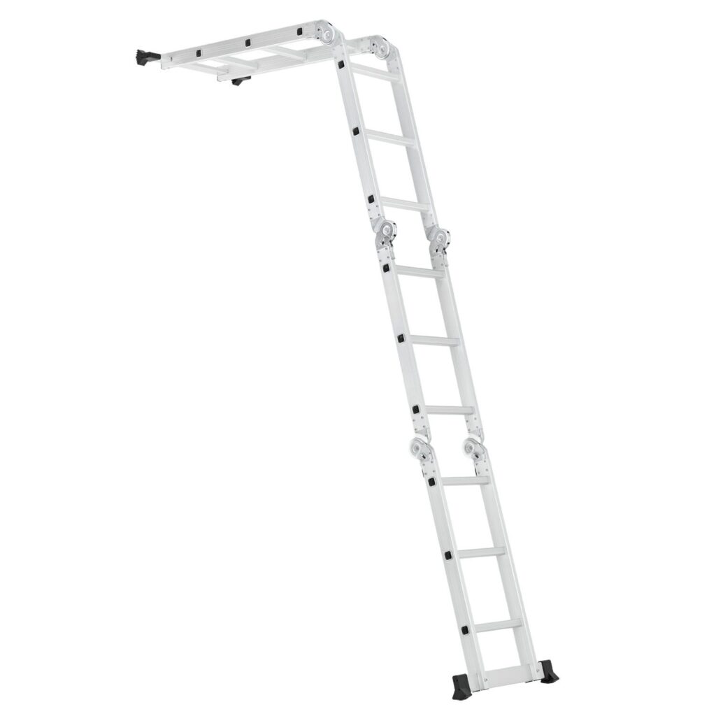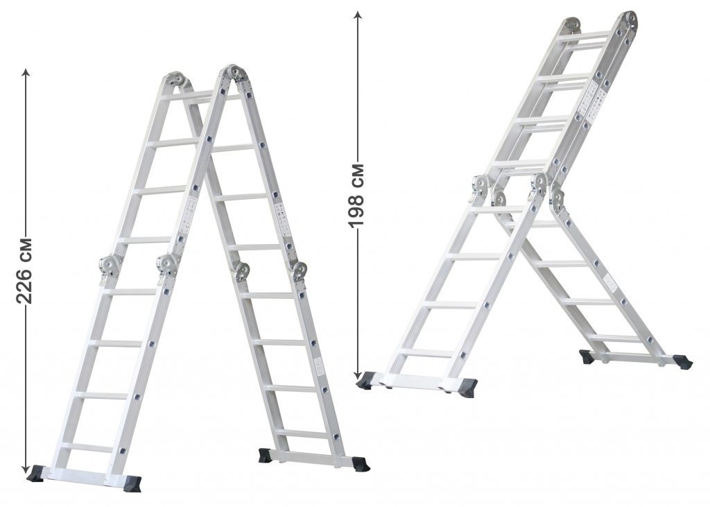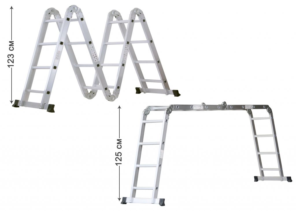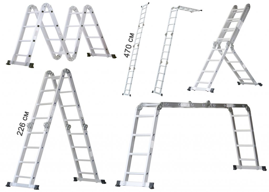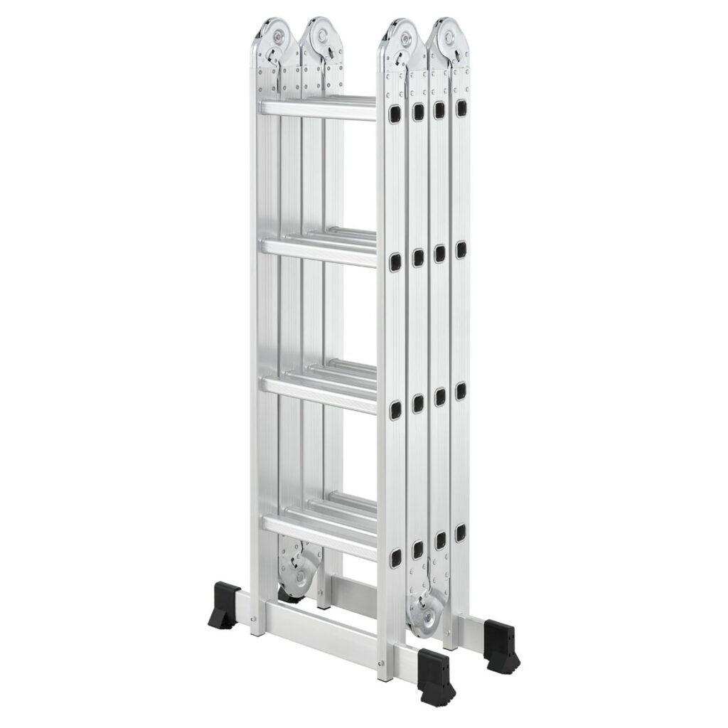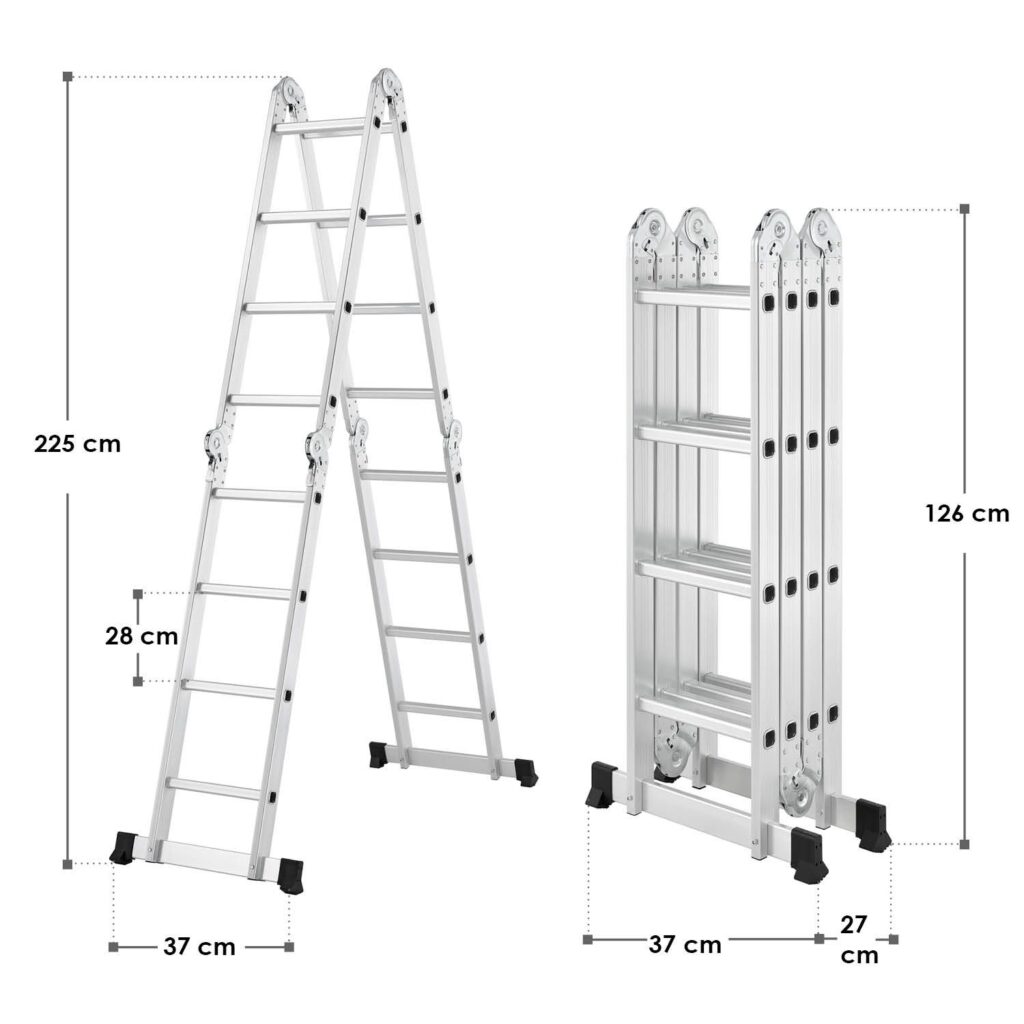 Наша многоцелевая лестница действительно универсальна. Гениальная шарнирная система из 6 шарниров разделяет многоцелевую лестницу на 4 элемента, каждый из которых имеет 4 ступени. Вы можете использовать лестницу в качестве косой лестницы или двойной лестницы в зависимости от ваших потребностей. В полностью разложенном виде стремянка достигает высоты 4,7 метра.