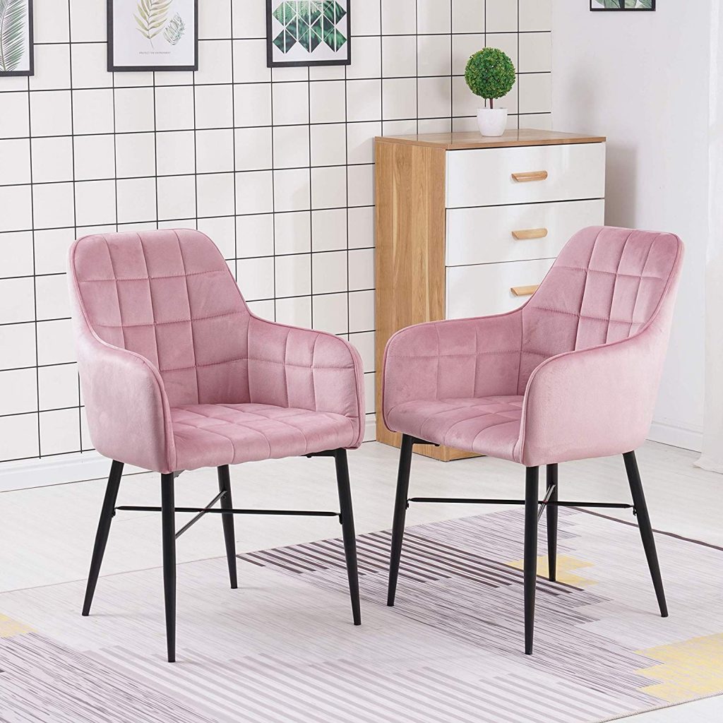 “Стілець з підлокітником, оксамитовим сидінням і металевими ніжками BH81 (Рожевий)”