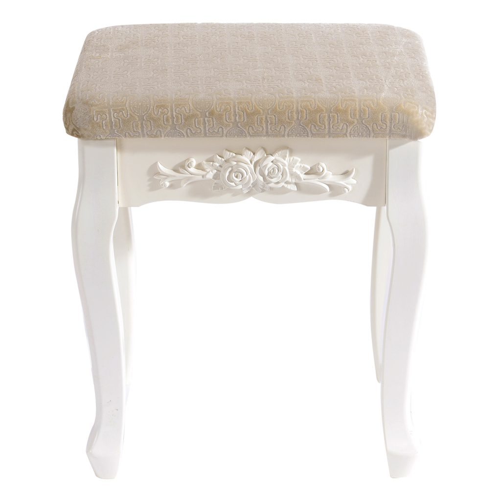 Наш продукт привлекает с точки зрения дизайна и качества. Первоклассный материал МДФ и связанная с этим долговечная конструкция этого стула гарантирует долгий строк службы. В дополнение к своему красивому дизайну, косметический стул чрезвычайно практичен. Все элементы изготовлены из МДФ и ручной работы. Белая отделка придает стулу современный, элегантный и светлый вид. Табурет хорошо обтянут и легко чистится влажной тряпкой. Этот стул создает в вашей гостиной романтическую и неповторимую атмосферу загородного дома.