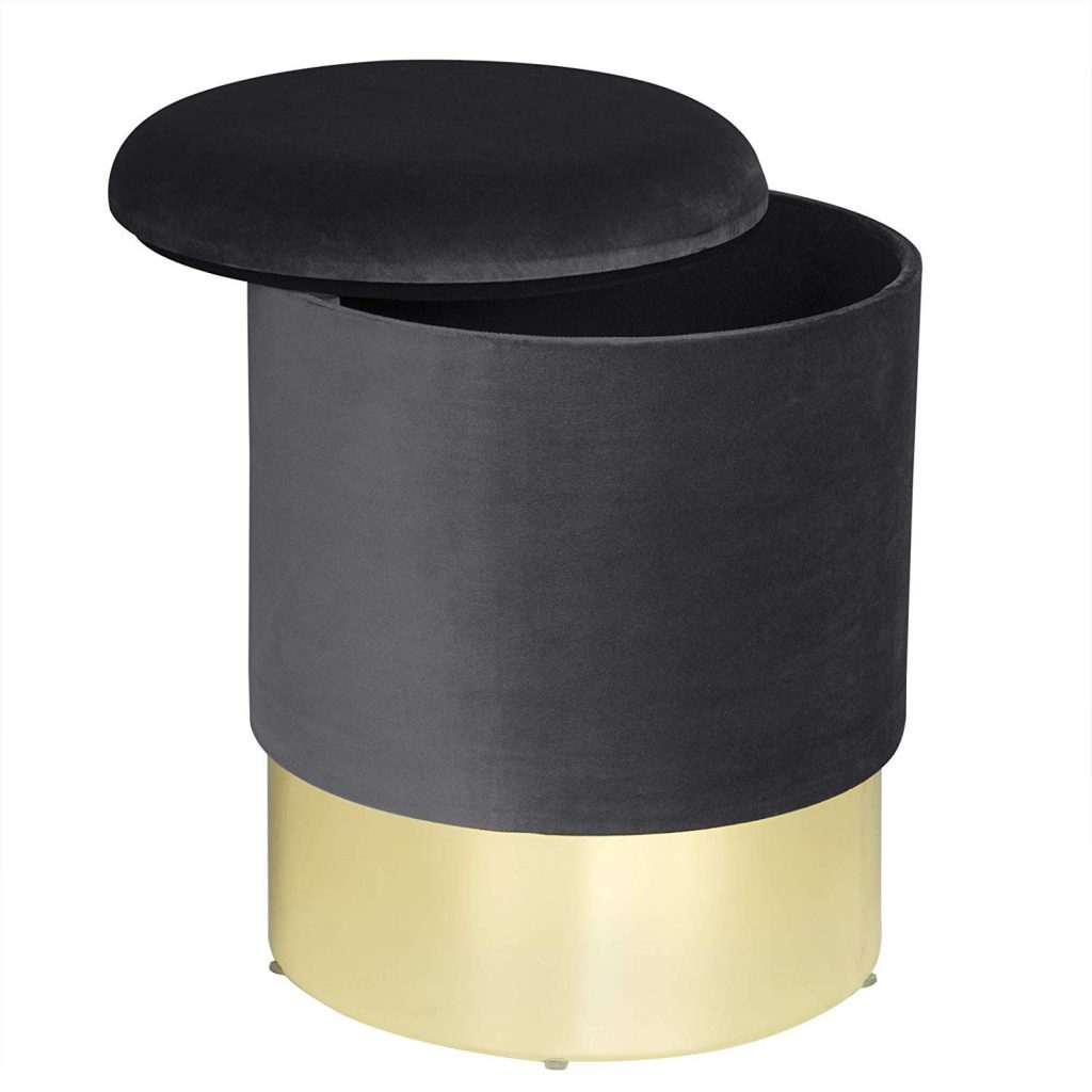 • Елегантний оксамитовий табурет із відділенням для зберігання компакт-дисків, книг, журналів, подушок тощо.
