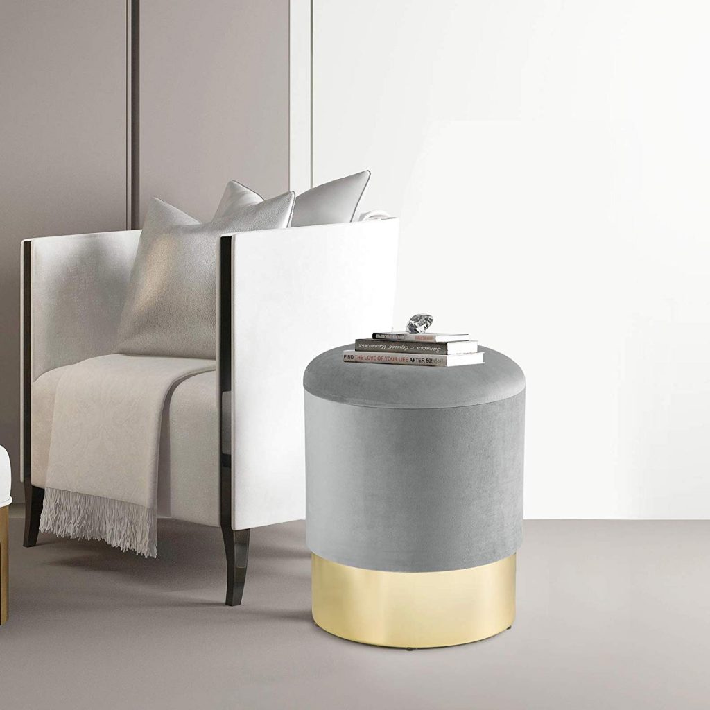 • Елегантний оксамитовий табурет із відділенням для зберігання компакт-дисків, книг, журналів, подушок тощо.