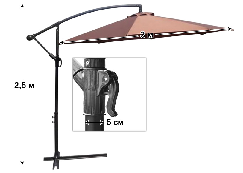 Садовый зонт – это ваш помощник в обеспечении комфорта в любой зоне отдыха на открытом воздухе: возле бассейна, на усадьбе загородного дома, в саду, на даче… Его широкий купол и специальная ткань, защищающая от ультрафиолета, обеспечит вам комфортное пребывание на солнышке и укроет от палящих лучей. А удобная ручка регулировки угла наклона позволяет укрываться от наклонных солнечных лучей до самого заката. Благодаря своему благородному дизайну, зонт несет не только функциональную пользу, но и эстетическую – он выгодно подчеркнёт экстерьер вашего участка и сделает его более изысканным.