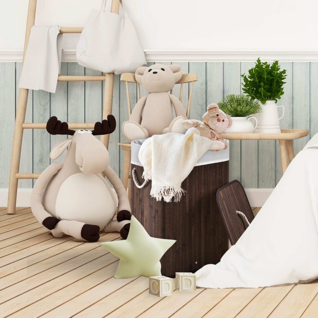 Бамбуковая корзина для белья Curly с крышкой и мешком для белья имеет много места (72 литра) для хранения вашего белья с защитой от запаха — идеально подходит для семьи из 2 человек. Разместите корзину для белья в ванной, спальне или детской комнате, где она обеспечит больше порядка! Съемный и моющийся мешок для белья используется для гигиеничного хранения вашего грязного белья. Ящик для белья легко переносится с помощью двух ручек. Благодаря бамбуковому корпусу, деревянной основе и металлическому каркасу он также очень надежен. Практичная деревянная крышка удерживает запахи в корзине для белья закрытыми.
