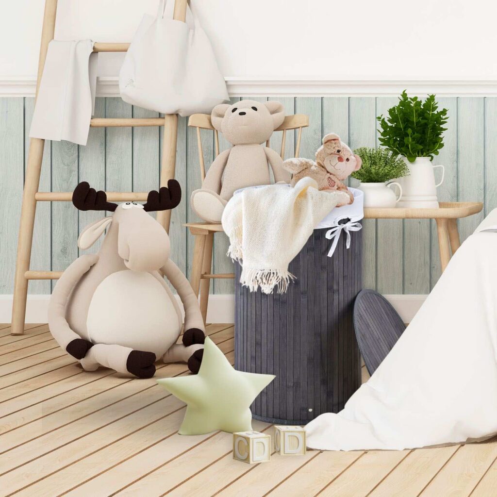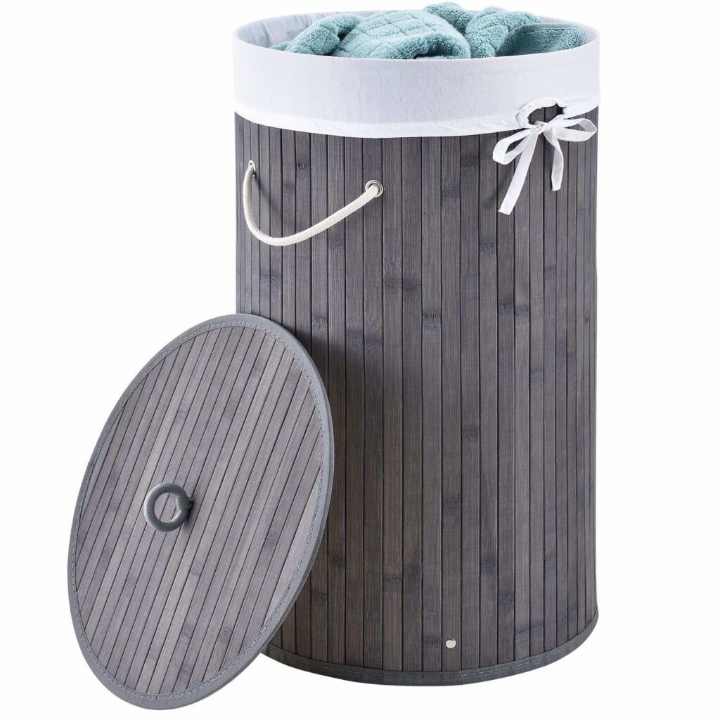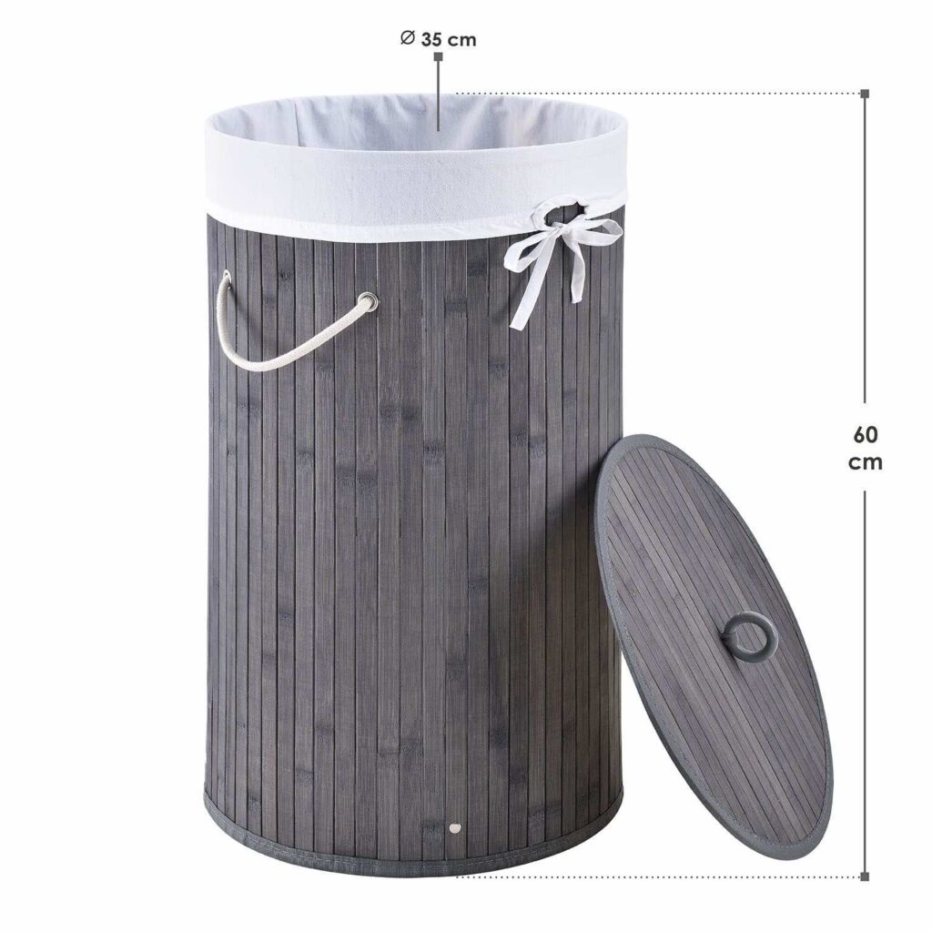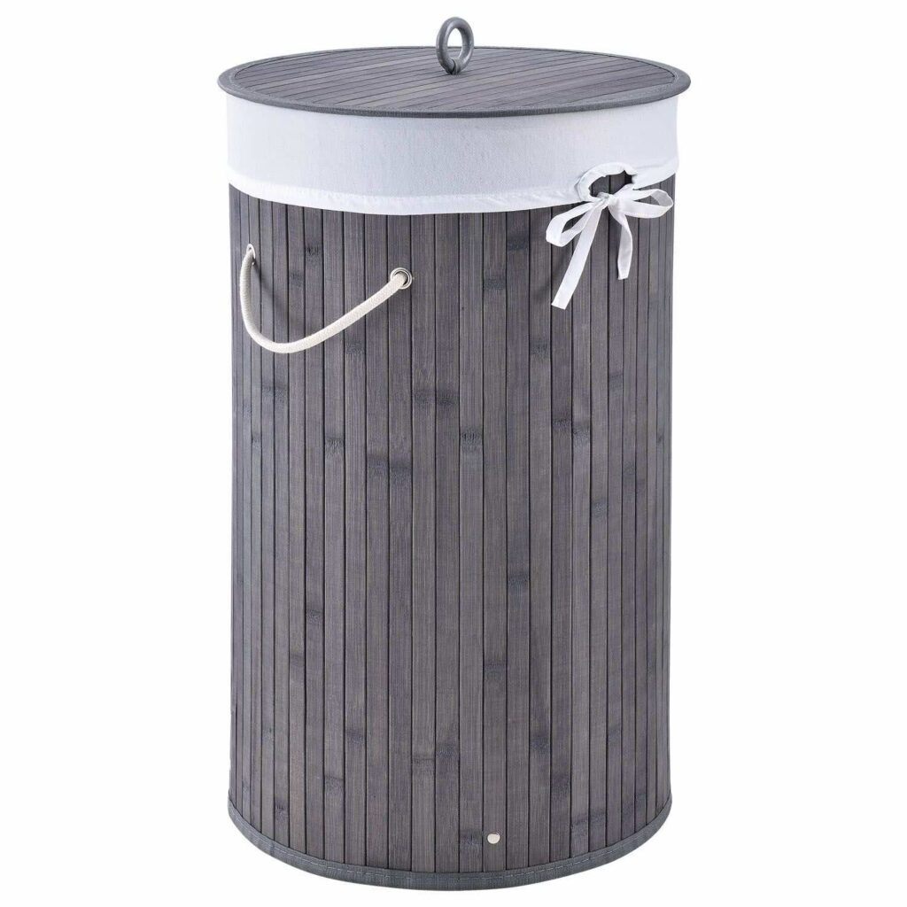 Круглая бамбуковая корзина для белья Curly-Round (55 литров, серая) с крышкой и мешком для белья предназначена для аккуратного хранения белья. Храните более 50 литров грязного белья на семью из 2 человек. Для большего порядка поставьте корзину (Ø 35 см, узкая) в спальне или в ванной комнате. Для гигиеничного хранения корзину можно закрыть деревянной крышкой. Это избавит от неприятных запахов! В корзину для белья также входит съемный мешок для белья из полиэстера, чтобы вы могли легко переносить сборник белья к стиральной машине. Корзина для белья имеет малый вес и имеет две ручки для переноски.