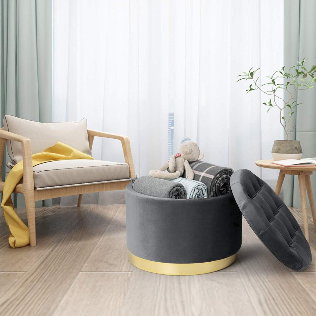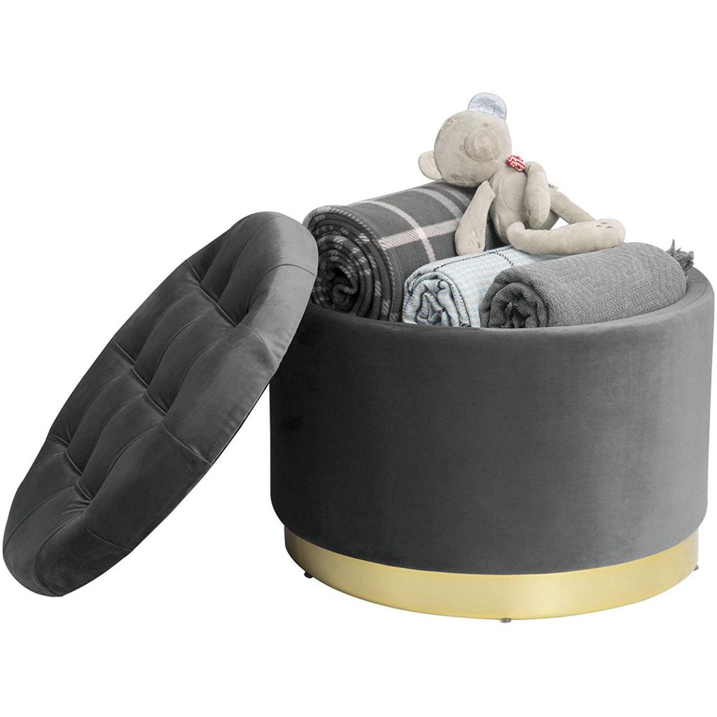 • Елегантний оксамитовий табурет із відділенням для зберігання компакт-дисків, книг, журналів, подушок тощо.