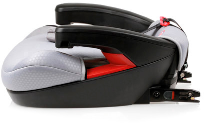 Ребенок фиксируется в бустере автомобильным ремнем безопасности. Инновацией конструкции является специальная клипса, которая служит дополнительной блокировкой и одновременно направляющей для штатного ремня. Кресло поднимает ребенка на необходимую высоту для правильности фиксации штатным ремнем безопасности.