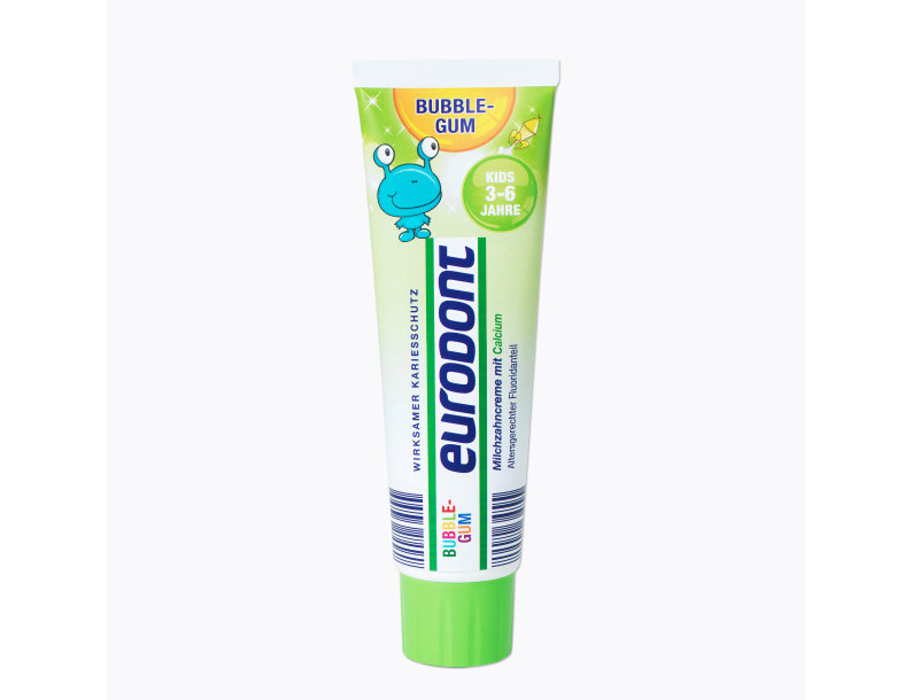 - детская зубная паста Eurodont Milchzahncreme mit Calcium Bubble-Gum