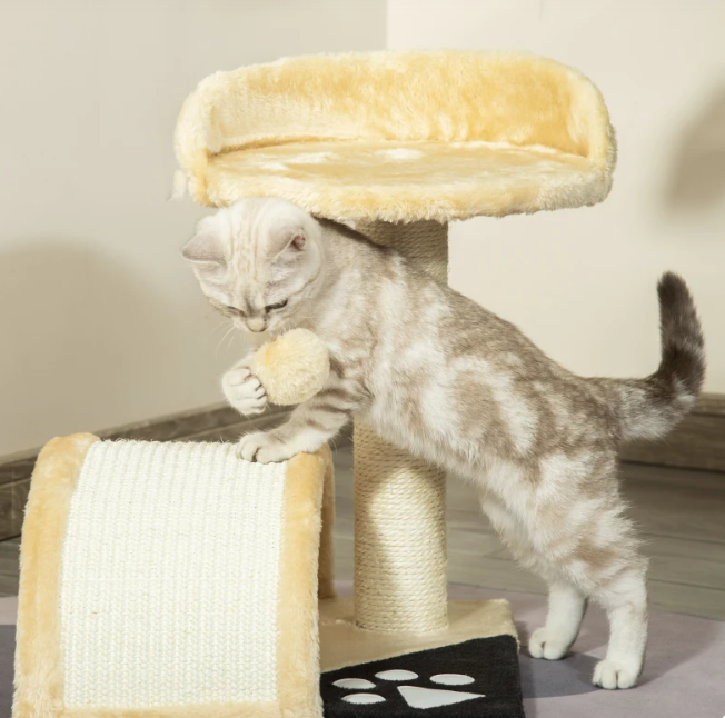 «Задовольніть всі природні інстинкти вашої кішки за допомогою нашої дряпки від PawHut! Завдяки натуральній сизалевій поверхні для дряпання та м’якій плюшевій накладці наше котяче дерево пропонує елегантний і затишний відпочинок для котів. Крім того, у кота є невелика котяча печера для відпочинку та м’яка котяча іграшка для нескінченних розваг.