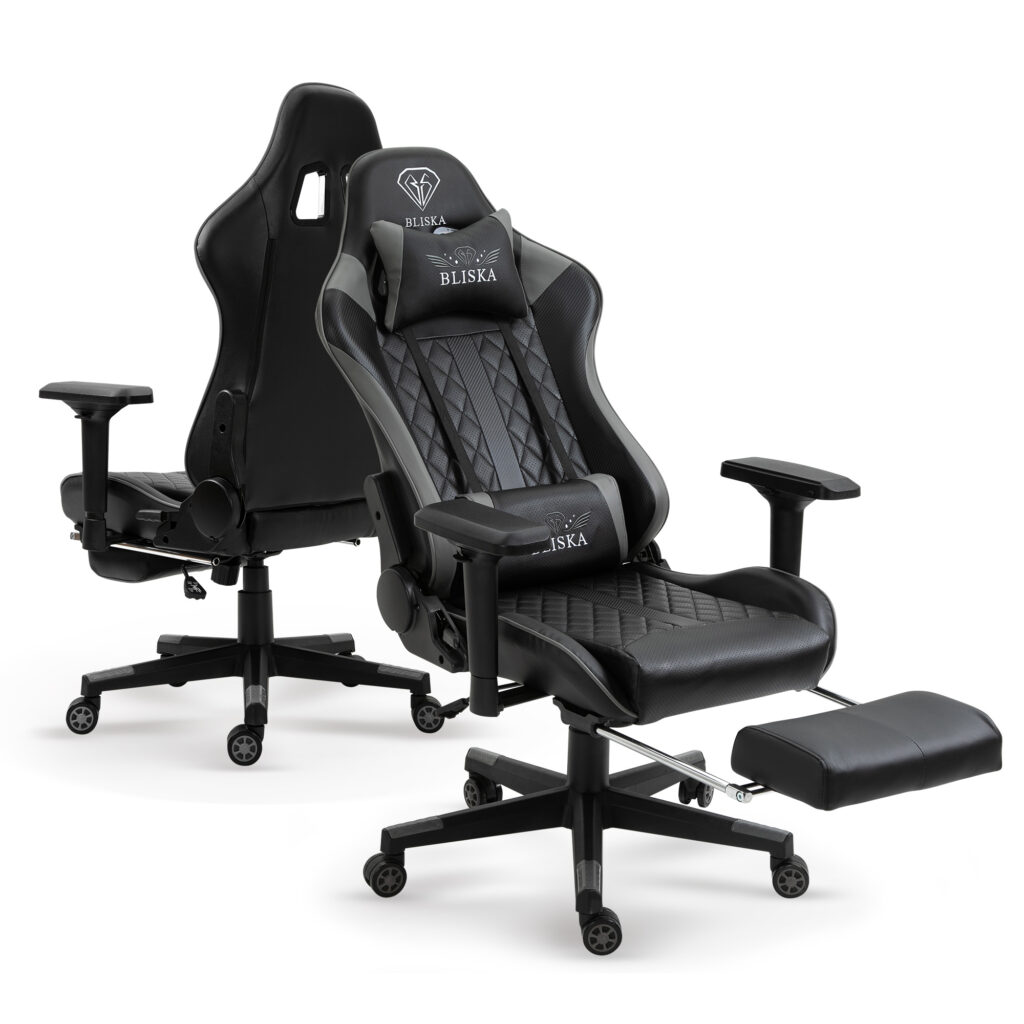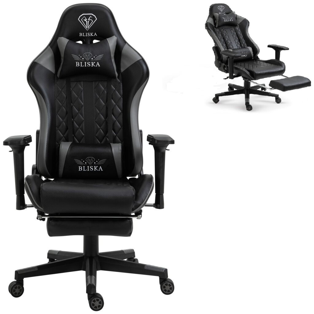 “Геймерское кресло игровое с подставкой для ног, до 120кг нагрузка, с 4D подлокотниками ts-bs5934 серый”
