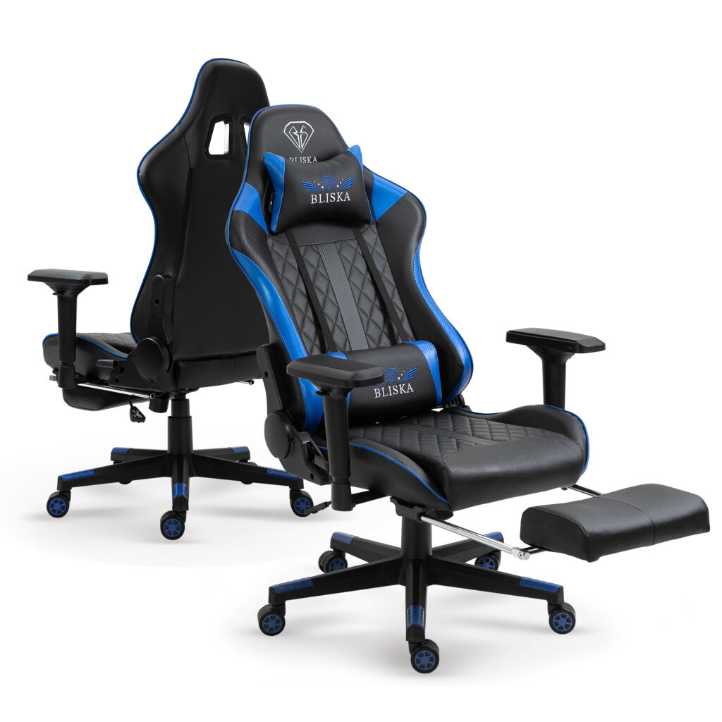 “Геймерское кресло игровое с подставкой для ног, до 120кг нагрузка, с 4D подлокотниками ts-bs5934 синий”
