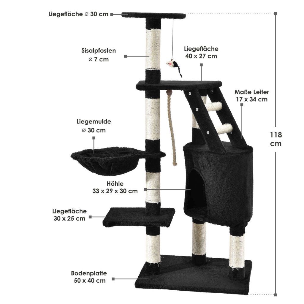 Іграшка для кішок висотою 118 см завдяки своїй компактній конструкції займає мало місця у вашому будинку. Таким чином, це котяче житло гарантовано стане вигідним вкладенням для кожного любителя котів.