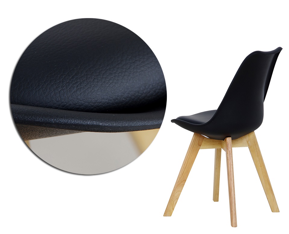 – Матеріал: спинка – твердий пластик/ніжки – дерево /обивка – м’яка штучна шкіра