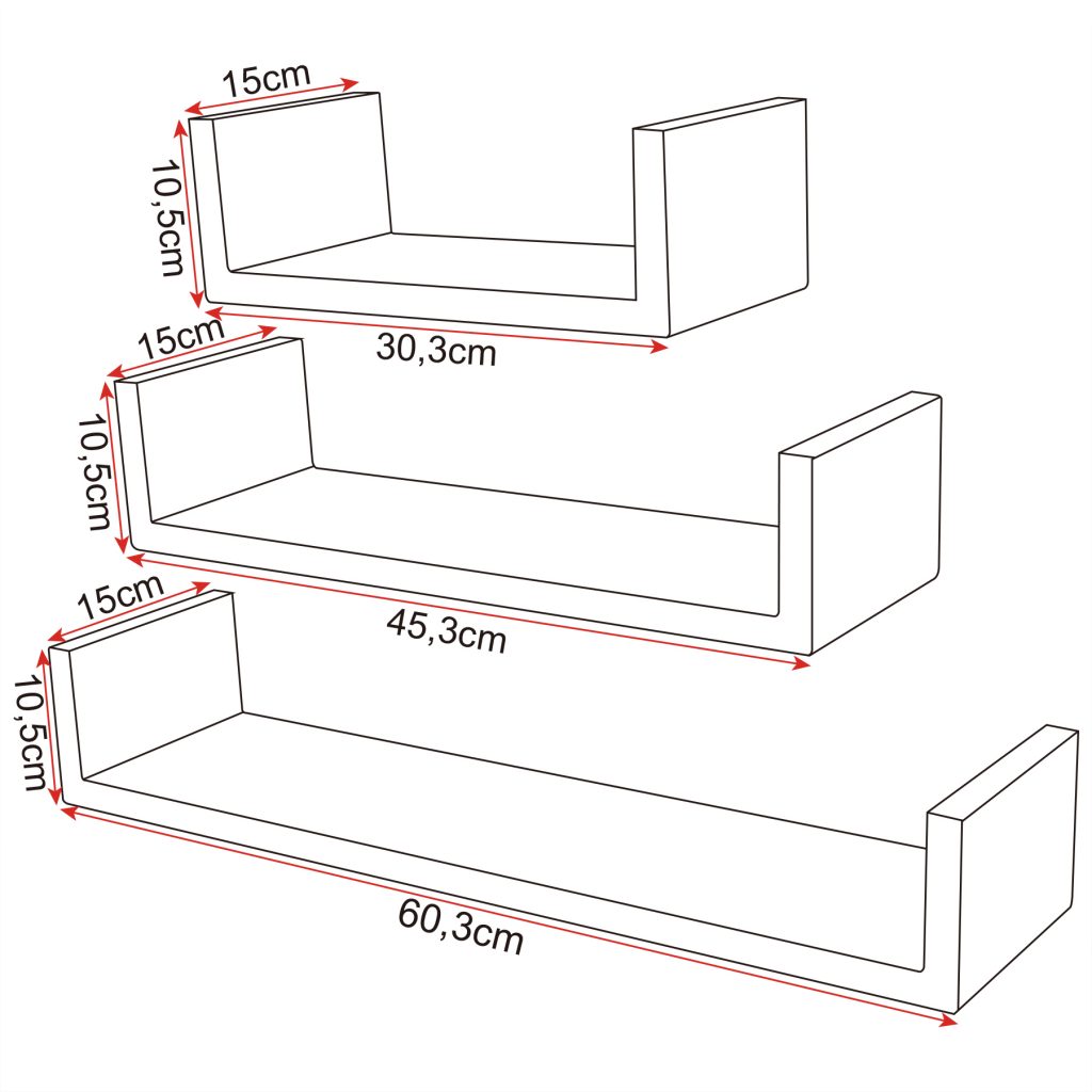 • Зовнішні розміри (Ш х В х Г): 60,3 х 15 х 10,5 см; 45,3 x 15 x 10,5 см; 30,3 x 15 x 10,5 см
